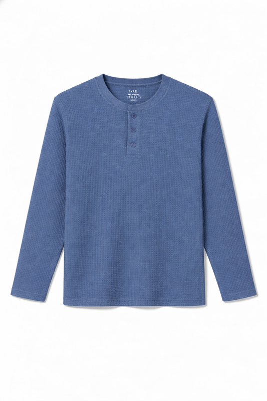 IVAR® Storm Blue Waffle Knit Full Sleeve Henley