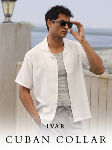 IVAR® White Drop Needle Full Sleeve Johnny Collar Polo