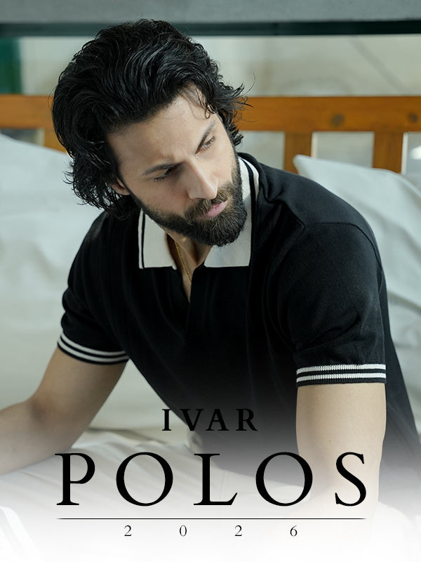 IVAR® Black Full Sleeve Johnny Collar Polo