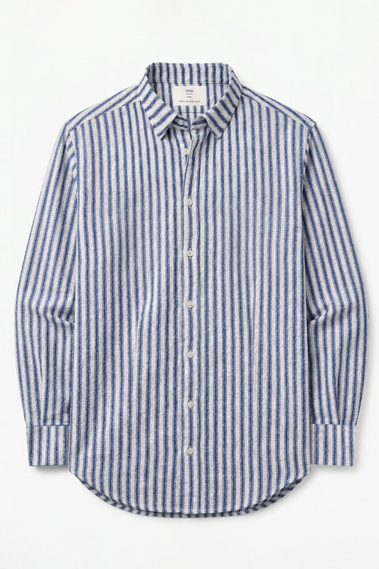 IVAR® Blue & White Striped Cuban Collar Shirt