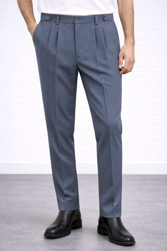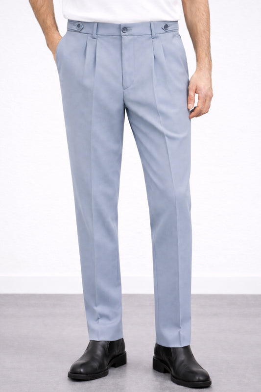 IVAR® Silver Twill Straight Fit Pleated Pants