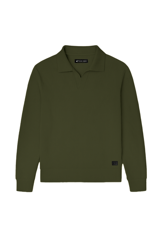 IVARĀ® Olive Green Johnny Collar Ribline Polo