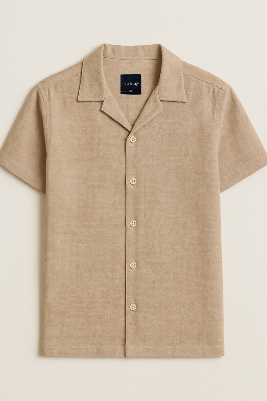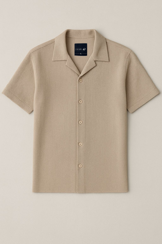 IVARĀ® Waffle Beige Cuban Collar Shirt