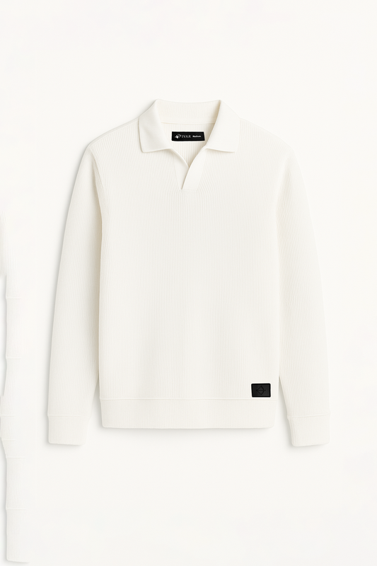 IVARĀ® Beige Johnny Collar Ribline Polo