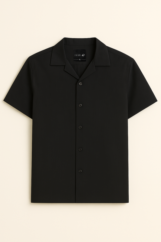IVARĀ® Checkered Black Cuban Collar Shirt