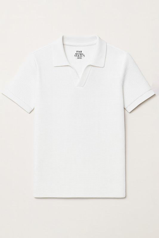 IVAR® White Waffle Knit Johnny Collar Polo