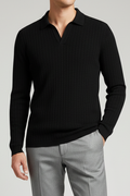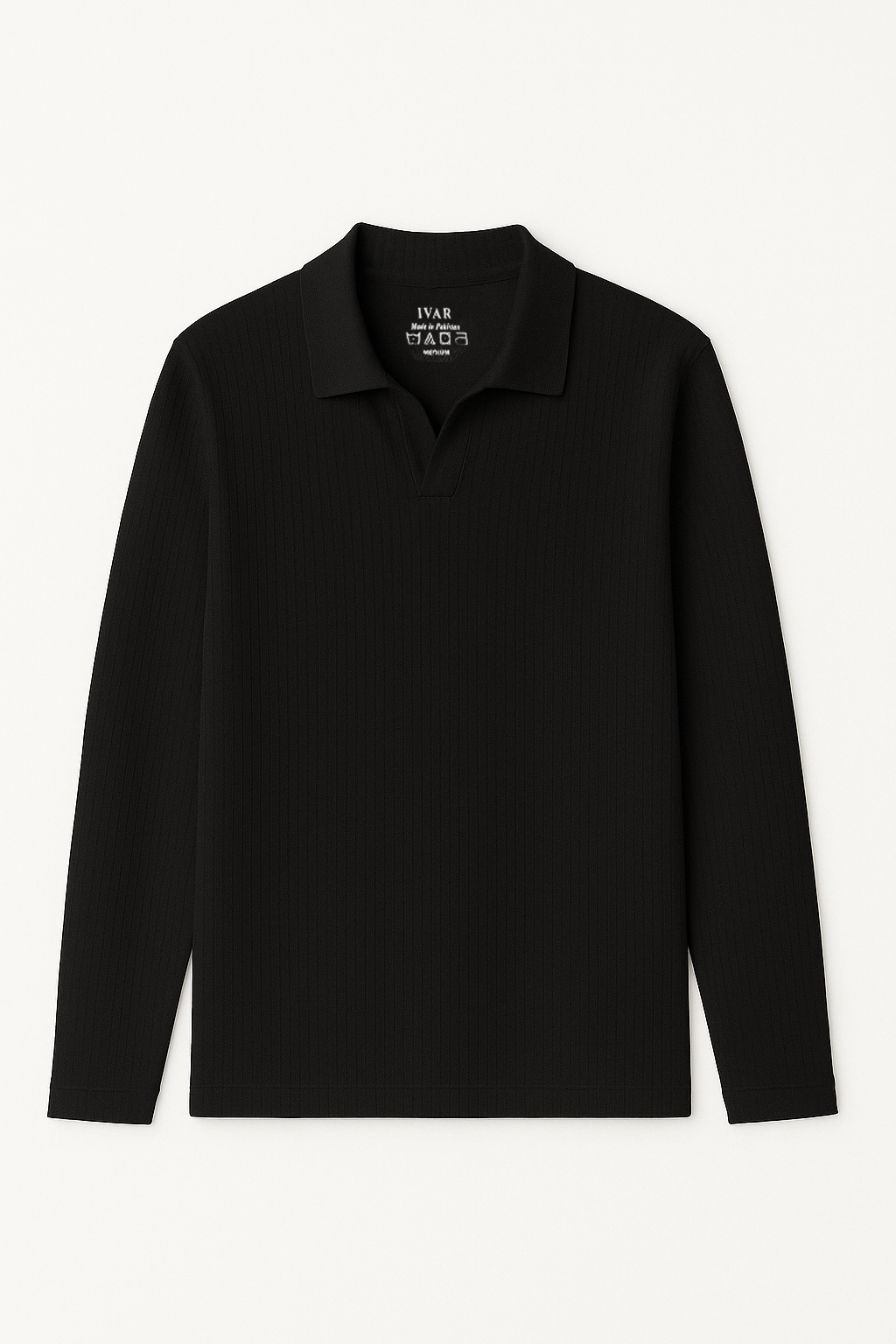 IVAR® Black Drop Needle Full Sleeve Johnny Collar Polo