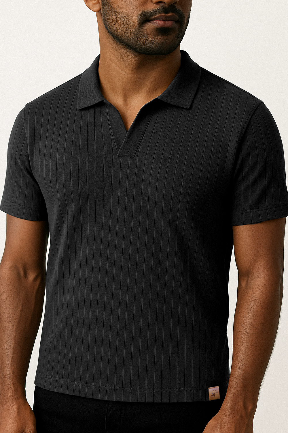IVAR® Black Drop Needle Johnny Collar Polo