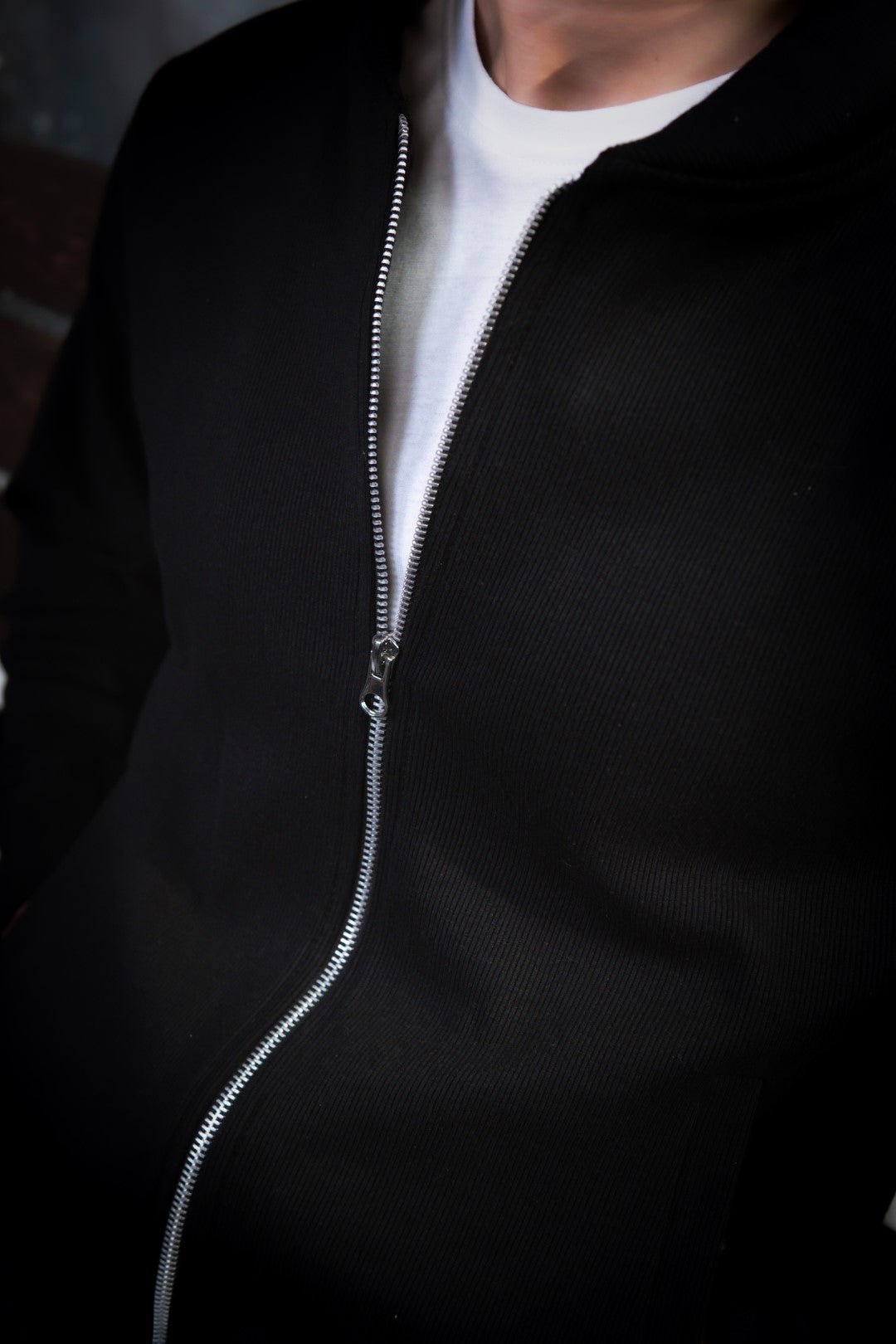 Add a modern touch to your wardrobe with this stylish knit zipper.