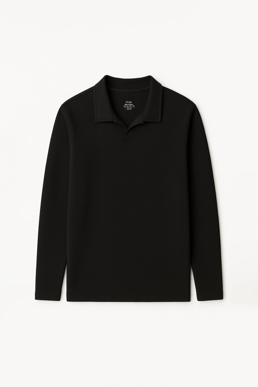 IVAR® Black Textured Full Sleeve Johnny Collar Polo