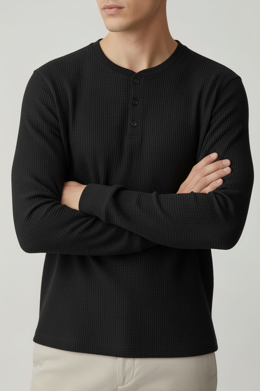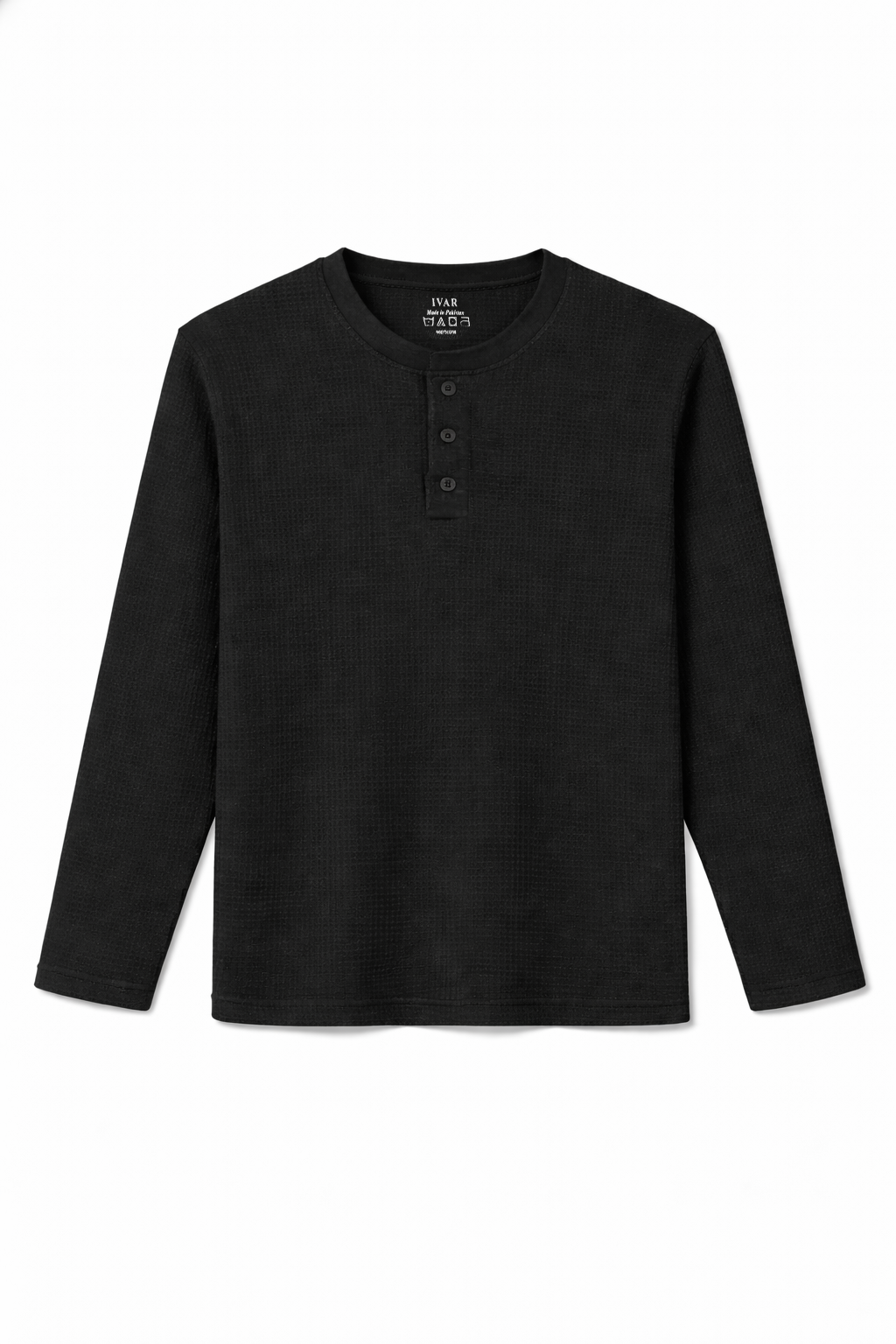 IVAR® Black Waffle Knit Full Sleeve Henley