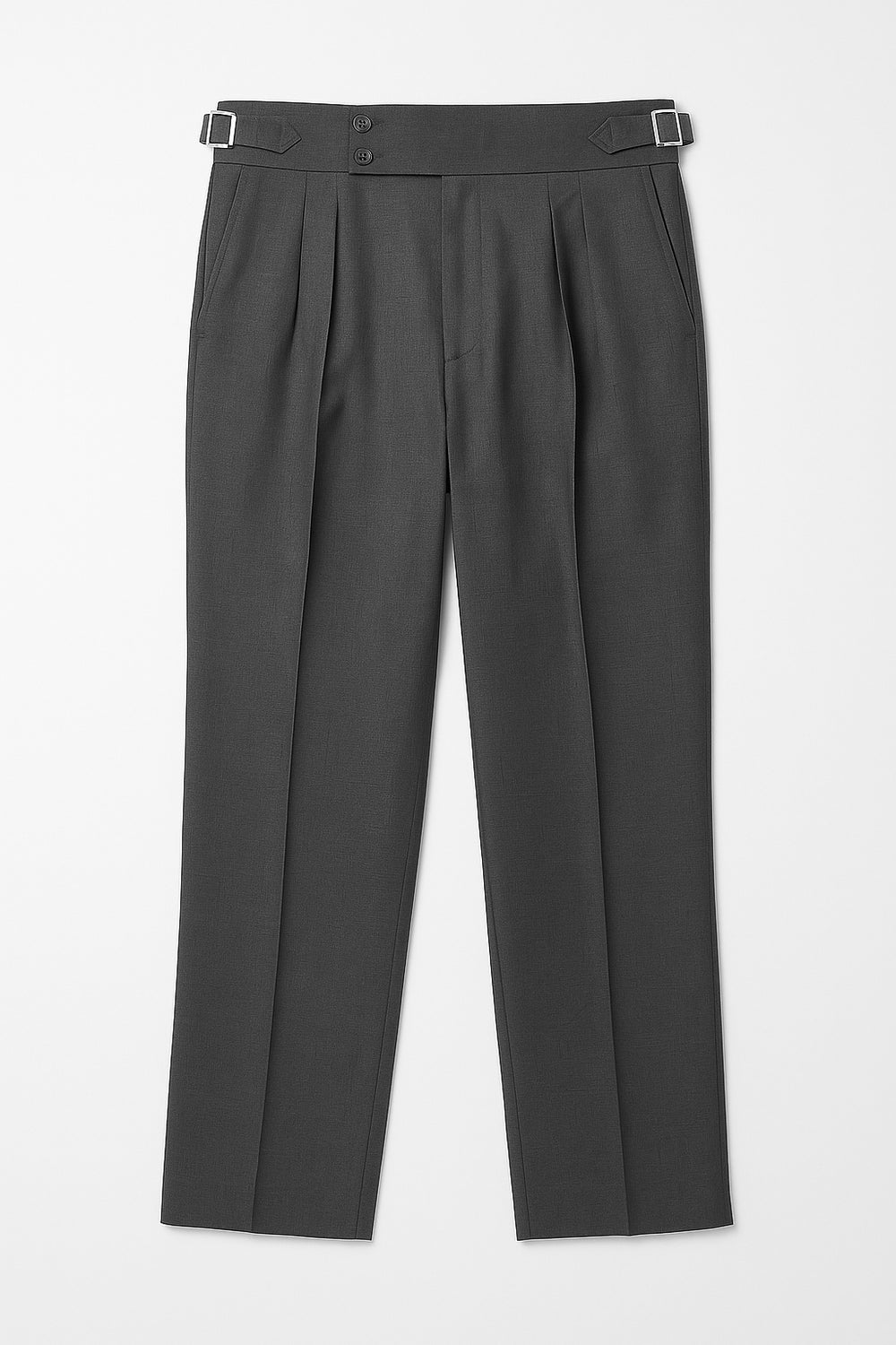 • Signature Gurkha Waistband – Adjustable dual-buckle system for a sharp, tailored fit without needing a belt.