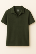 IVAR® Dark Green Ribbed Johnny Collar Polo