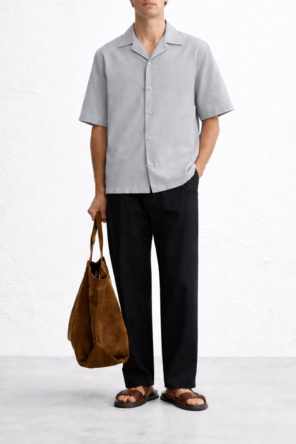 - Signature button-free Cuban collar for a modern, laid-back silhouette