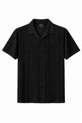 IVAR® Jet Black Cable Knit Cuban Collar Shirt