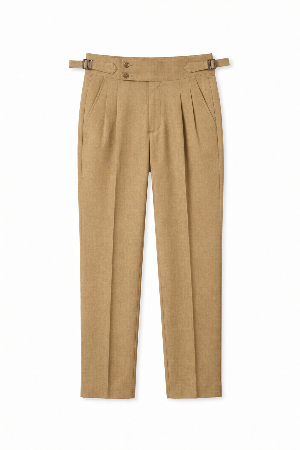 Signature Gurkha Waistband – Adjustable dual-buckle system for a sharp, tailored fit without needing a belt.