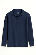 IVAR® Navy Waffle Knit Full Sleeve Johnny Collar Polo
