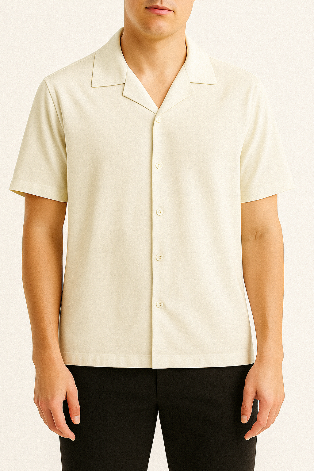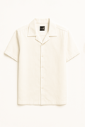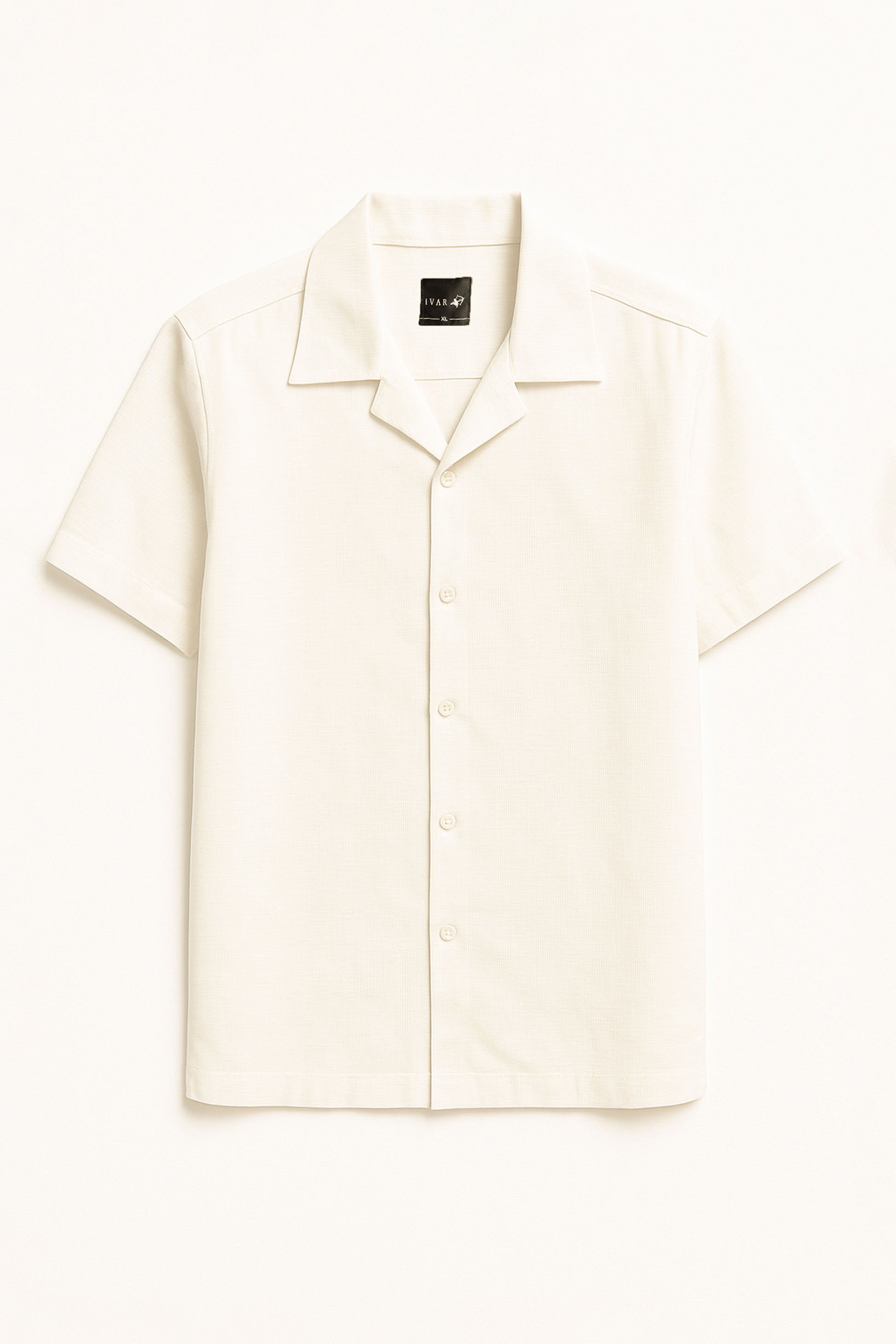 IVAR® Off White Jacquard Cuban Collar Shirt