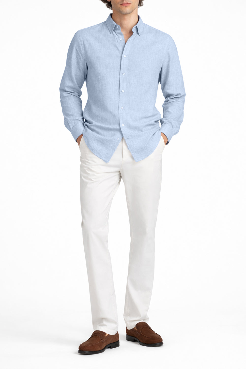 The subtle natural linen texture gives the shirt a refined, effortless look that elevates both casual and smart outfits.